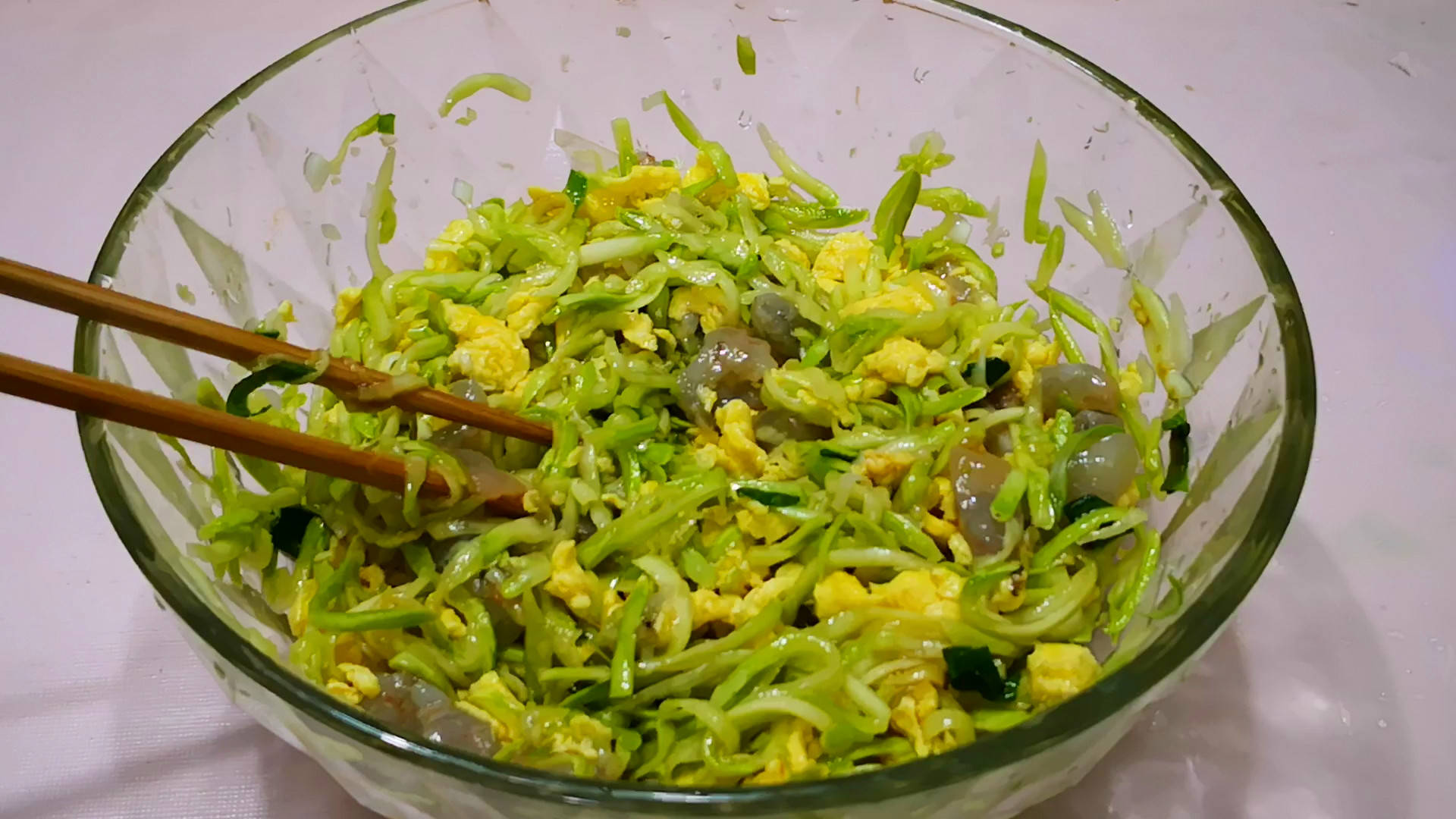 【西葫芦虾仁水饺】:西葫芦1个 鸡蛋3个 虾适量