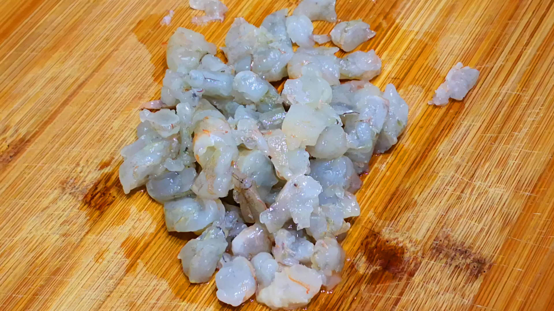 剥好的虾仁洗净后切成小丁放入碗中,然后加入适量的料酒腌制备用。
