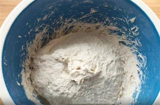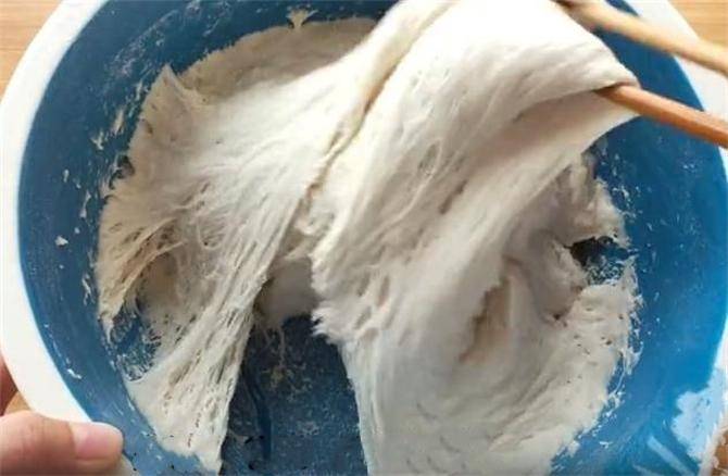 2.醒发至两倍大的时候,我们一定要用筷子搅拌排气,把里面的气泡尽量排尽,这一步就相当于我们揉面。