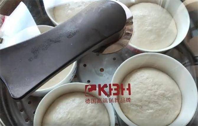 5.然后我们把它放在蒸锅内,盖上盖子,二次醒发至2倍大,这个季节温度比较高,大约醒发10到15分钟就可以。