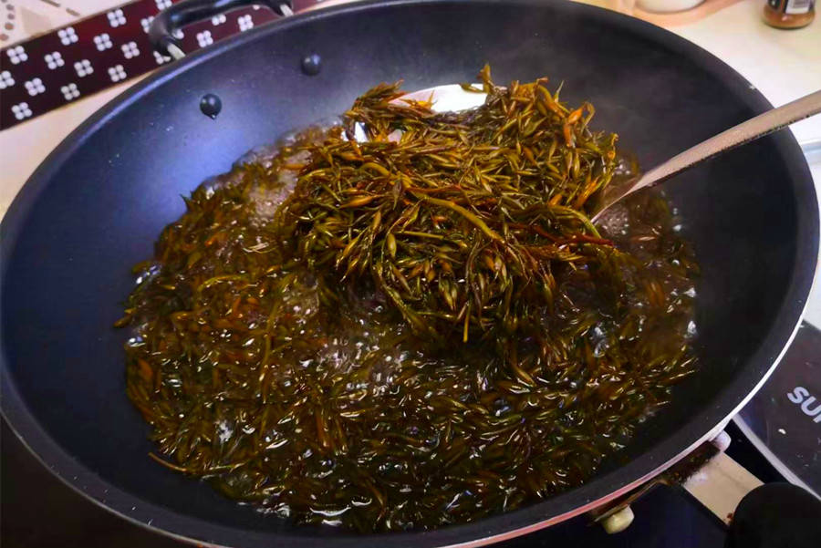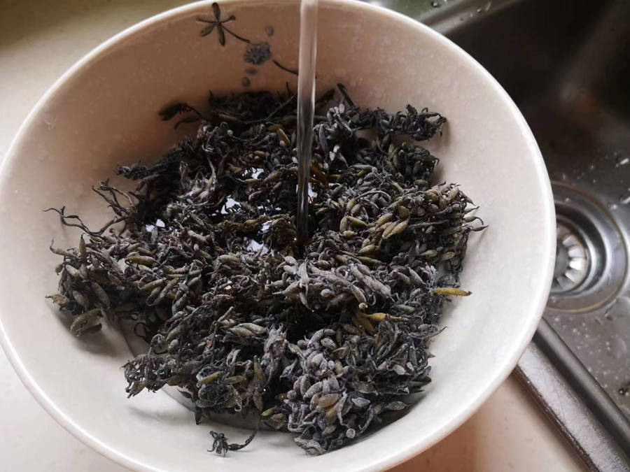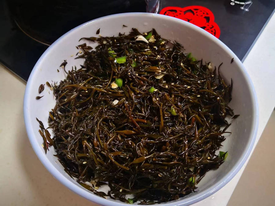 羊栖菜虽然产量丰富,在我家却鲜有人食用,不过在日本和韩国却很是畅销,备受人们的喜爱。它的口感密实脆嫩,味道清爽咸鲜、其鲜嫩的茎芽采摘下来后,适合做炒菜、沙拉、做汤或拌饭,吃起来的口感跟吃海藻和木耳丝的口感类似。不过,我们平时买到的羊栖菜大都是干的,吃之前需要先泡一泡。