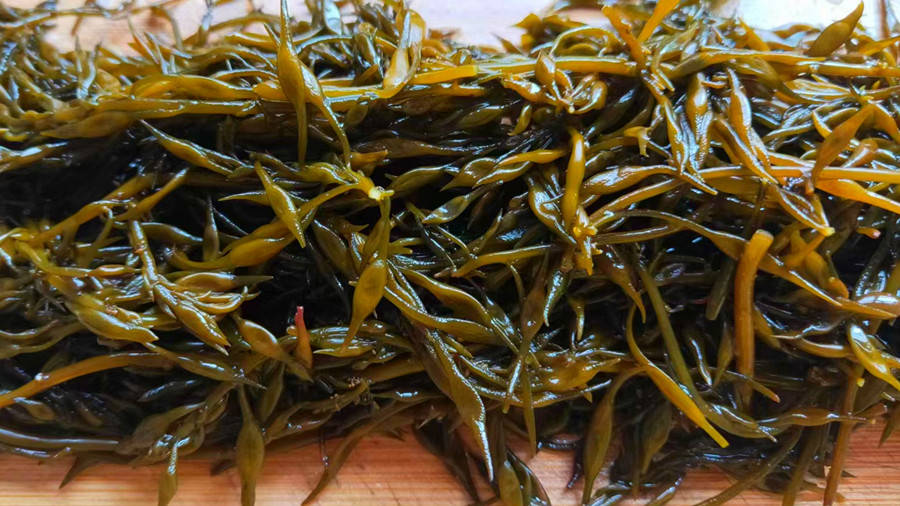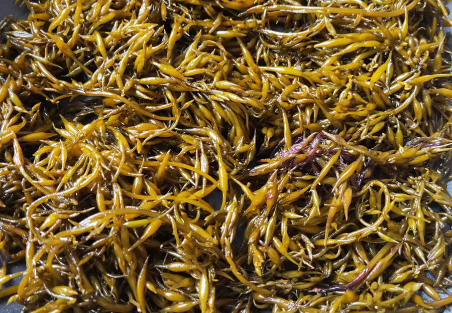羊栖菜是一种产自大海的、含有高碘的海藻类植物,大多长在沿海浅滩岩石上,被公认为是当前最有食用价值的海藻之一。羊栖菜因其形状似鹿角,又像一串串的小麦,所以又被称为鹿角尖、海菜牙、海大麦。它的营养价值非常高,富含膳食纤维、维生素、褐藻酸以及人体所需的18种氨基酸和多种微量元素,具有抗病毒、清热通便,增强免疫力等功效,营养丰富,有“长寿菜”之美称。