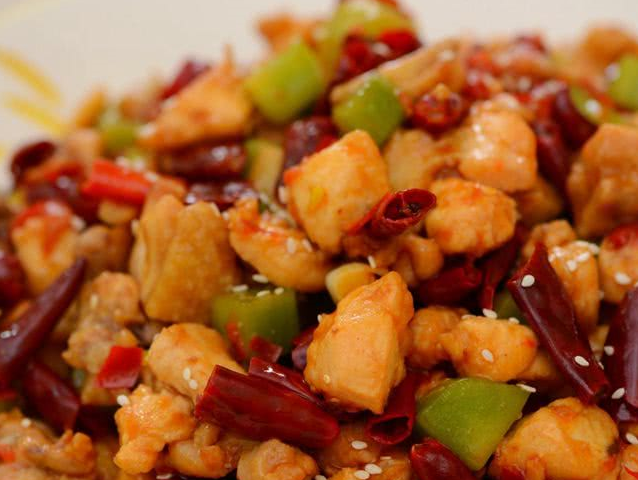 辣子鸡丁也是出了名的辣,但是一定不要觉得辣子鸡丁很干,没法下饭。其实辣子鸡丁很好吃,鸡肉很脆很香。就是不知道为啥,很多家的鸡丁都炸干了。