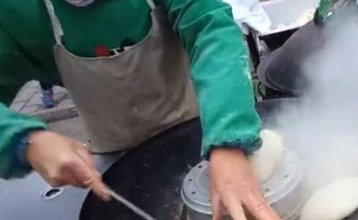 大妈的小吃摊上最吸引人的就是做馒头的这两口大锅了,而且不是我们现在所见过的蒸锅,而且这种大锅很多厂里面的人都没有见过,只有农村才会有,也是以前在家里面做饭的时候用的大黑铁锅专门是用来蒸馍的。这位大妈是来自农村的,而且这两口大锅也是他从家里面带到城里面的大妈做馒头用的就是这两口大锅,也是因为他做的馒头特别的独特,再加上吃的馒头跟我们平时吃到的有很大区别,所以生意都是非常好的,跟平时吃的馒头都是放在蒸锅里面蒸出来的,蛋是大妈做的馒头,却像是一种锅贴,专门贴在锅边,然后边蒸边烙熟的。