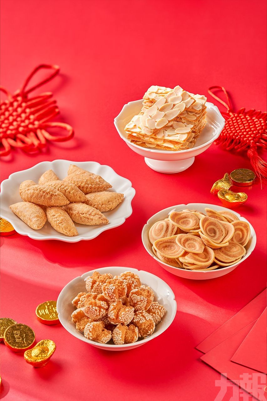 以傳統工藝手作的五款地道粵式賀歲年糕禮盒,經典之選有鴻運發財年糕、核桃棗蓉糕、紅豆紫米糕、臘味芋頭糕及瑤柱臘味蘿蔔糕。此外,更有匯聚四款經典甜糕口味的四喜臨門年糕禮盒,香甜軟糯,和你甜蜜過年!臨近新年,更有芝麻笑口棗、椰絲酥角及香脆牛耳酥三款賀年酥點,陪您一起過新年。