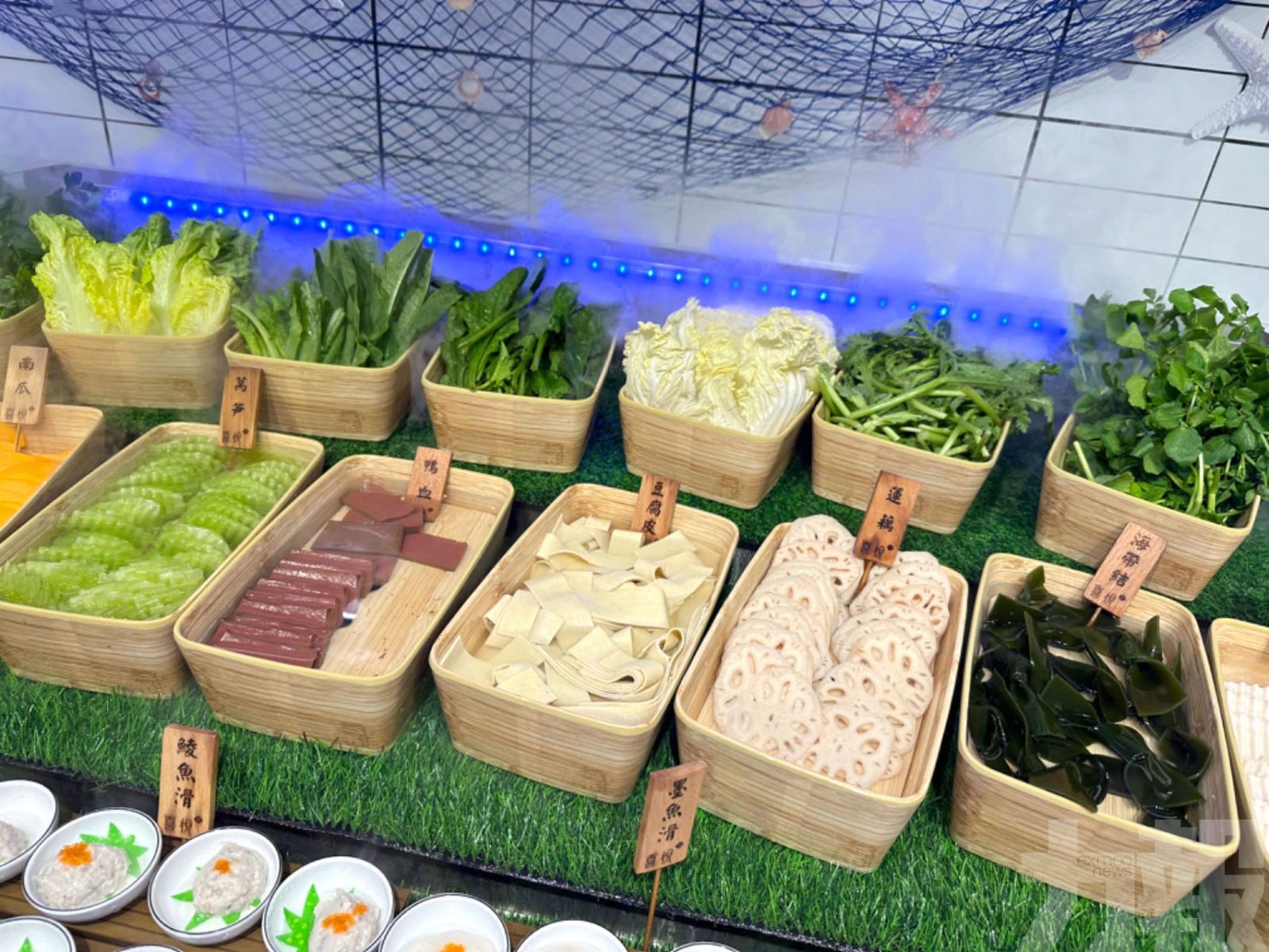 晚市期間推出兩輪超值自助任食火鍋,主打優質靚肉、生猛海鮮、中菜小炒,還有靚湯、糖水、雪糕及汽水與生啤任飲,每位更送上刺身及法國生蠔拼盤。可容納百人的自助火鍋區,食材種類繁多,生蝦與鮑魚都是熱門之選,即切雪花肥牛入口即化、田園時蔬極受女士歡迎,餐廳更有部巨型扭蛋機滿足小孩。