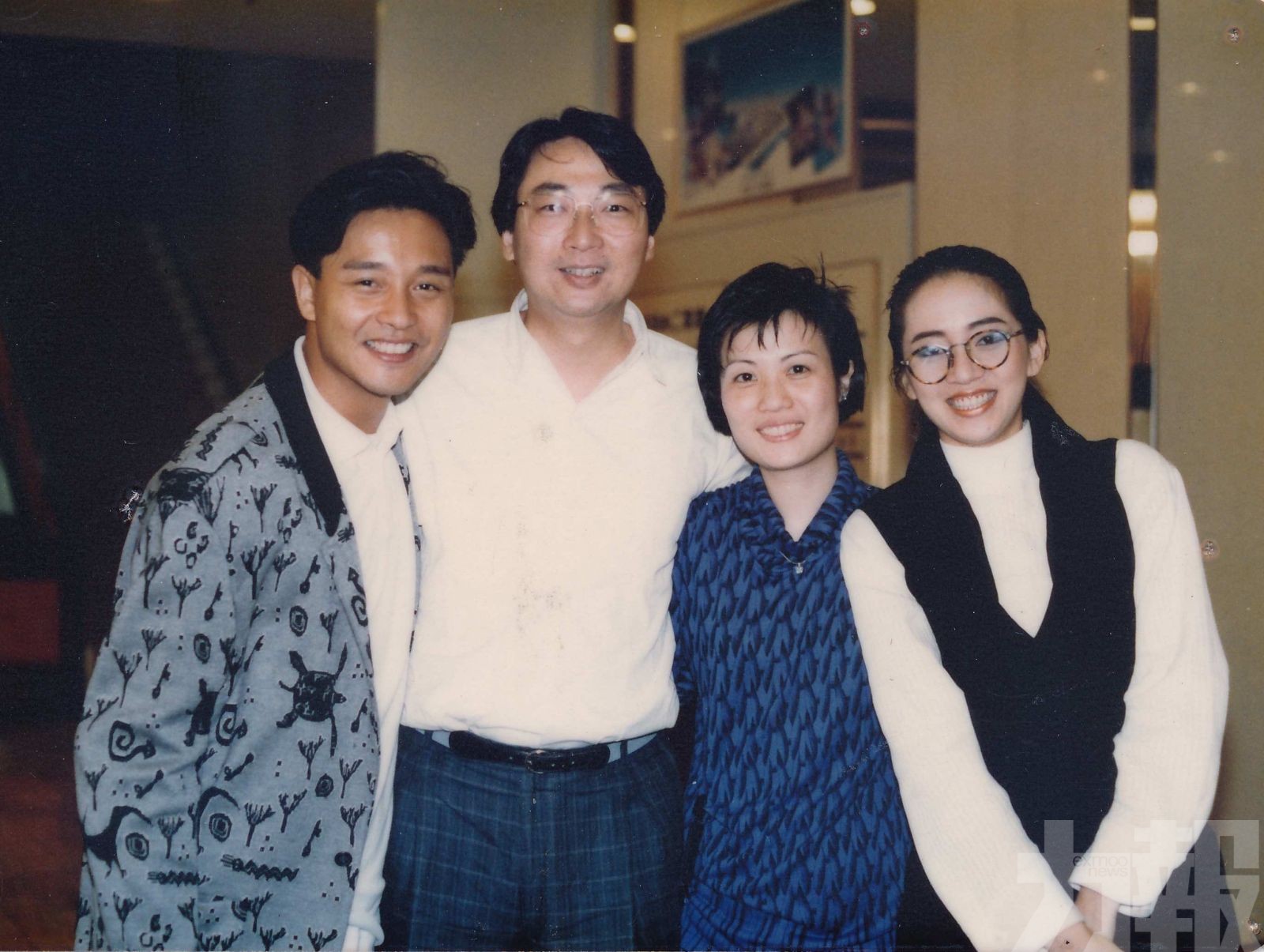 (左起)張國榮、陳柳泉及陳淑芬夫婦、梅艷芳。(相關機構圖片)
