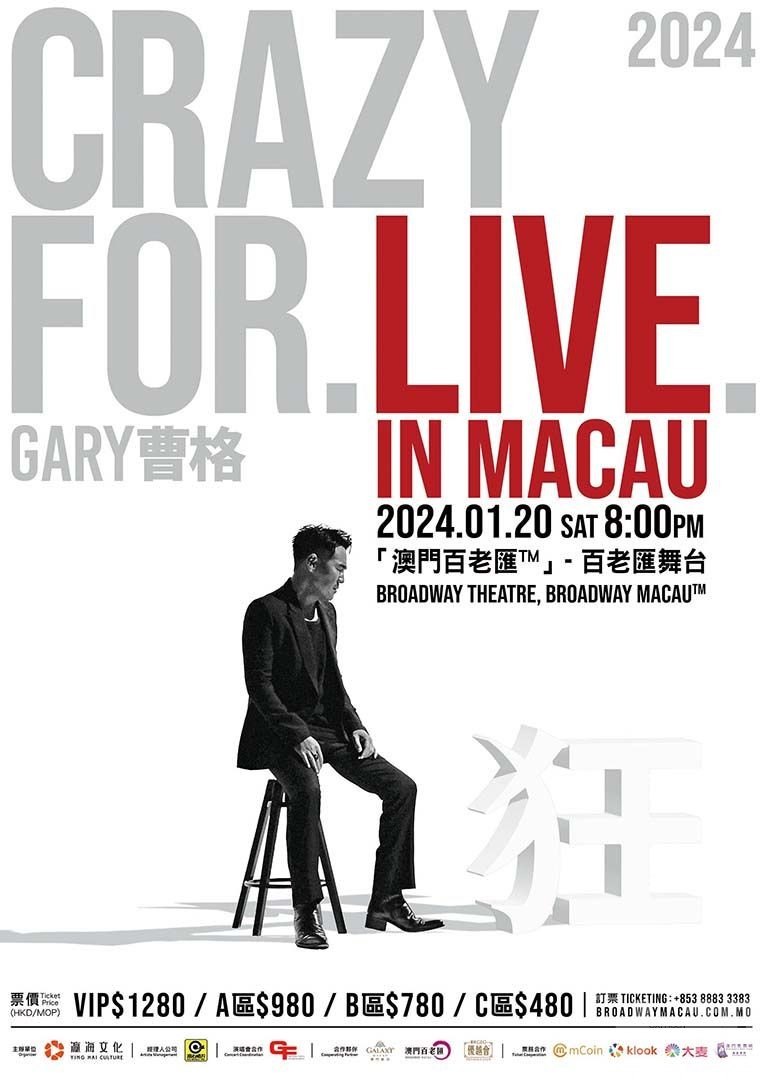 2024年01月20日 - 備受喜愛的華語流行歌手、金曲歌王曹格(Gary Chaw)將在「澳門百老匯」舉辦令人期待已久的《Crazy for Live》演唱會,為樂迷們帶來一場震撼人心的音樂盛宴。