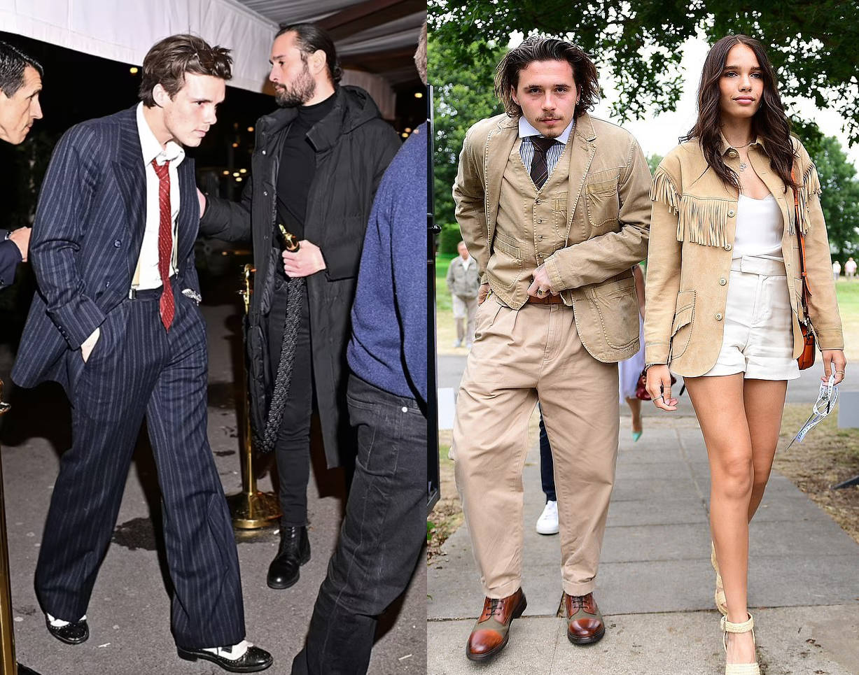 被认为是贝家三个儿子中颜值担当的克鲁兹这次的造型有些辣眼睛。他身穿复古条纹西装,搭配白衬衫,红色领带,复古的太阳眼镜,脚踩黑白撞色复古皮鞋。可是,他的领带却松松垮垮,凌乱的发型显得有些邋遢,连外媒都认为他的造型太古怪。