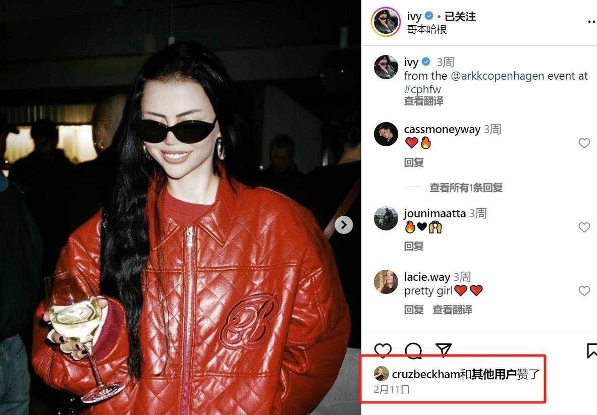 目前尚不清楚Bby Ivy和克鲁兹是如何相识的。不过,翻看Bby Ivy的社交账号,从2月11日起,克鲁兹开始频频为其点赞。看来,两人即便是真的在交往,也仅仅是初级阶段。