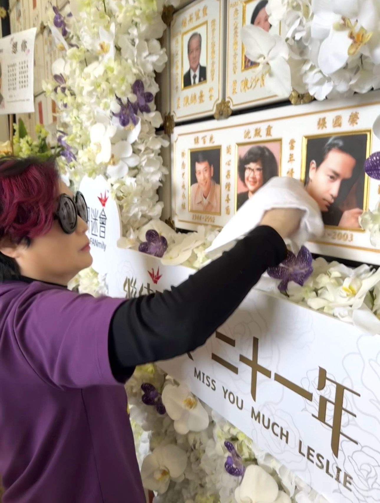陳太昨日早上在沙田寶福山張國榮的靈位前,為他的粉絲們送上祝福。(相關機構圖片)