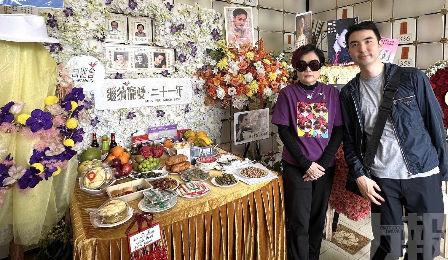 陳淑芬(陳太)與兒子陳家豪出席張國榮離世21周年的紀念活動。(相關機構圖片)