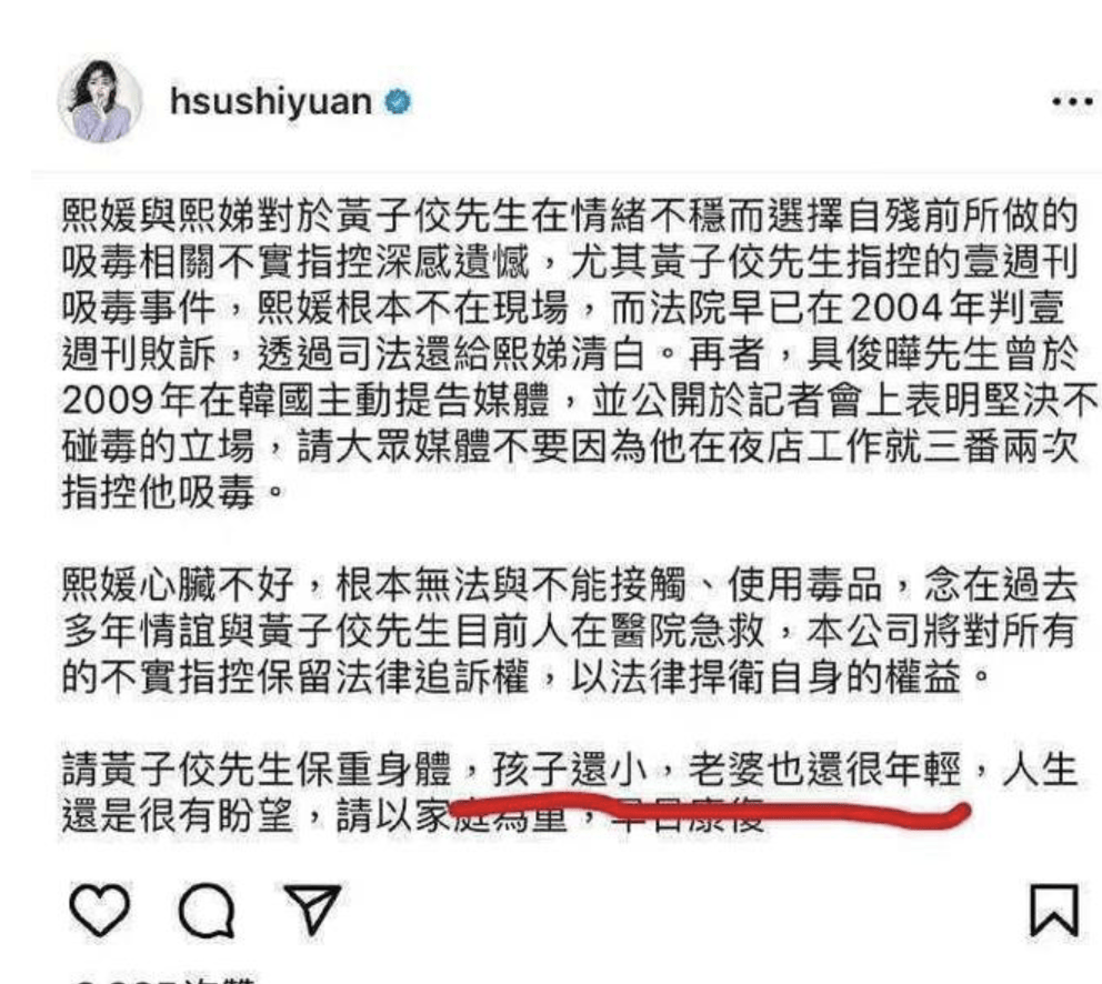 不过姐妹俩最后对黄子佼的喊话让网友们表示很费解,称“请黄子佼先生保重身体,孩子还小,老婆还年轻,人生还有很有盼望,请以家庭为重,早日康复”。这些话看起来是在祝福黄子佼,但是却还有点威胁他的意味......