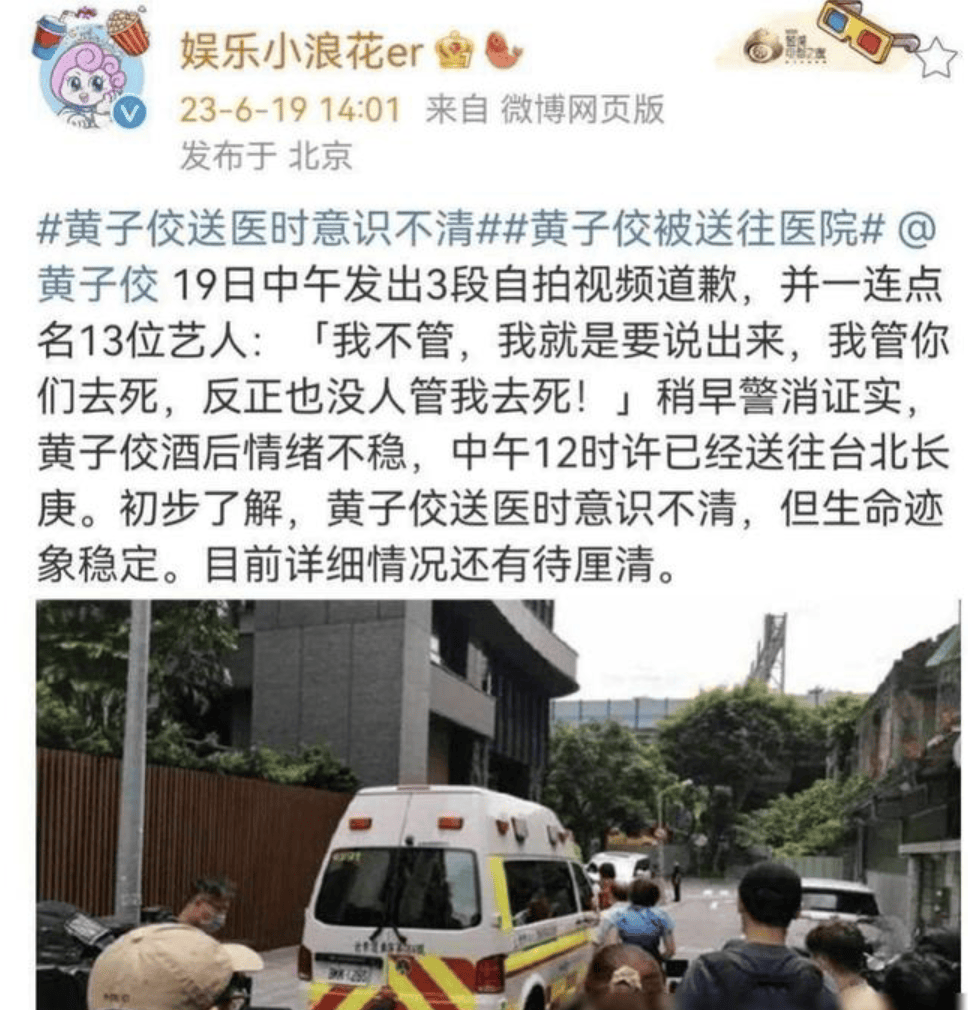 爆料完后黄子佼喝完酒情绪也不太稳定,有了割腕自杀的自残行为,好在被妻子发现并立刻将其送往了医院救治。好在救治及时,黄子佼最终也捡回了一条命。