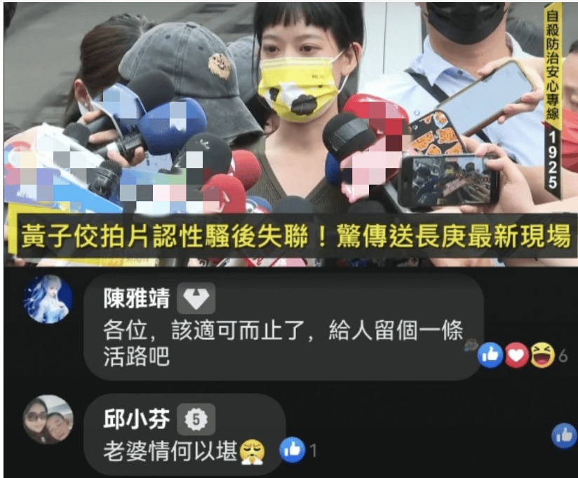 要说此次案件最无辜的人则是黄子佼的妻子孟耿如,两人结婚4年女儿也才两岁,当时黄子佼在直播后就将自己反锁在房内自残,吓得孟耿如立刻破门而入才将他救了回来。想象得出当时的她有多么无助,之后孟耿如还要独自一人面对媒体替丈夫收拾残局,在镜头前泣不成声。